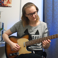 Lähtötasoni oli nolla, en siis ollut koskaan aiemmin soittanut kitaraa tai mitään muutakaan instrumenttia koulun musiikkitunteja lukuun ottamatta. Musiikillinen taustani – tai sen puute – huomioiden, olen näiden kolmen vuoden aikana oppinut kitaransoitosta hurjasti. Tuntui mahtavalta, että epämääräisten äännähdysten sijaan kitarasta alkoi melko nopeasti kuulua jotakin etäisesti musiikkia muistuttavaa! Aloittelijavaiheen jälkeen olen käynyt Guitar Trainerin soolo-, tekniikka- ja rock-kitaratunneilla, joilla keskitytään sellaisiin asioihin, joita lempimusiikkini soittamisessa tarvitaan. Olen aina pitänyt Guitar Trainerin opetustyylistä; opettajat ovat ystävällinen, antavat konkreettisia vinkkejä soittajana kehittymiseen ja erilaisiin henkilökohtaisiin haasteisiin ja ovat aidosti innostuneita oppilaidensa kehittymisestä. Voin hyvin suositella Guitar Trainerin opetusta eritasoisille soittajille vasta-alkajista pidempään soittaneisiin.