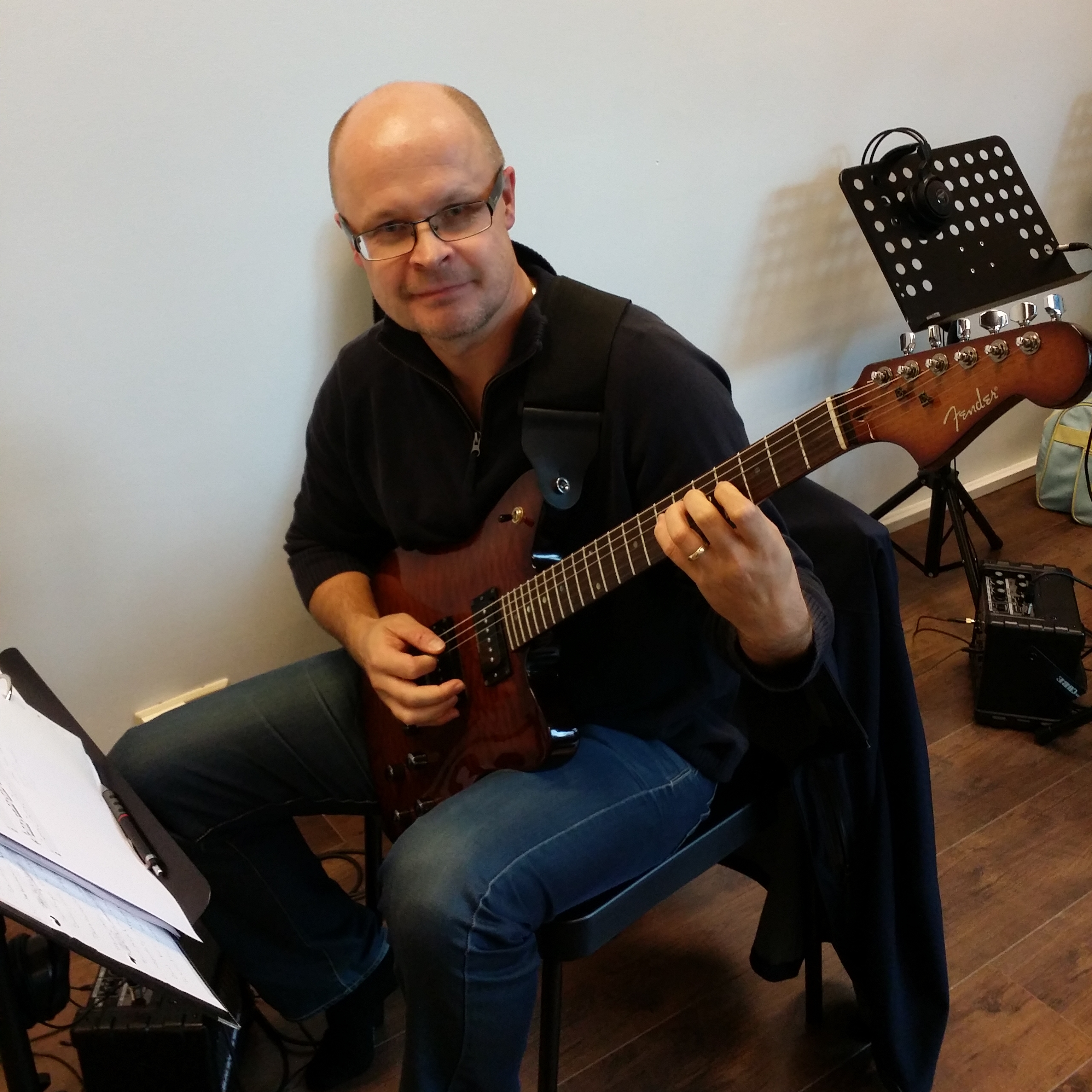 Aloitin soittoharrastuksen joitain vuosia sitten, mutta en oikeastaan ikinä kehittynyt nuotiokitaristia paremmalle tasolle, joten noin vuosi sitten etsin itselleni uutta kitaraopettajaa. Vuoden aikana olen käynyt pääasiassa tekniikka-, teoria-, rytmikitara- ja soolokitara-tunneilla. Olen oppinut otelaudan ja sointuteorian yllättävän kivuttomasti ja soolotunneilla olen oppinut käyttämään skaaloja ja moodeja musiikin päälle. Kaiken kaikkiaan oppitunneilla opitut asiat ovat antaneet työkalut ja innostaneet tekemään omaa musiikkia. Ennen vain harjoittelin tabloista muiden kappaleita, mutta nyt suurimmaksi osaksi rakennan omia sointukiertoja, riffejä ja sooloan niiden päälle. Tunneilla on hyvä tunnelma ja lähes joka tunnilla on tullut ahaa-elämyksiä soittamiseen. Suosittelen Guitartraineria kenelle vaan jota kiinnostaa soitonoppiminen helposti ja innostavasti. Meidän perheestä Guitar Trainerin kitaratunneilla käyvät minun lisäksi myös tyttäreni.